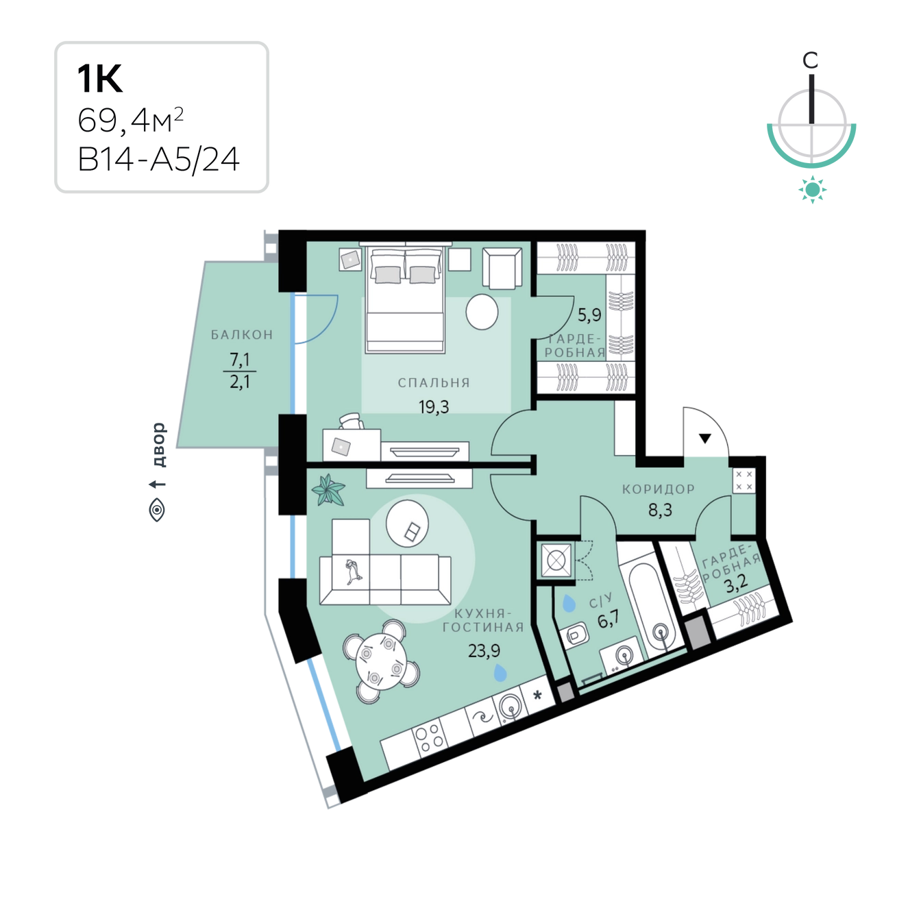 1-комн. 69.40 м²