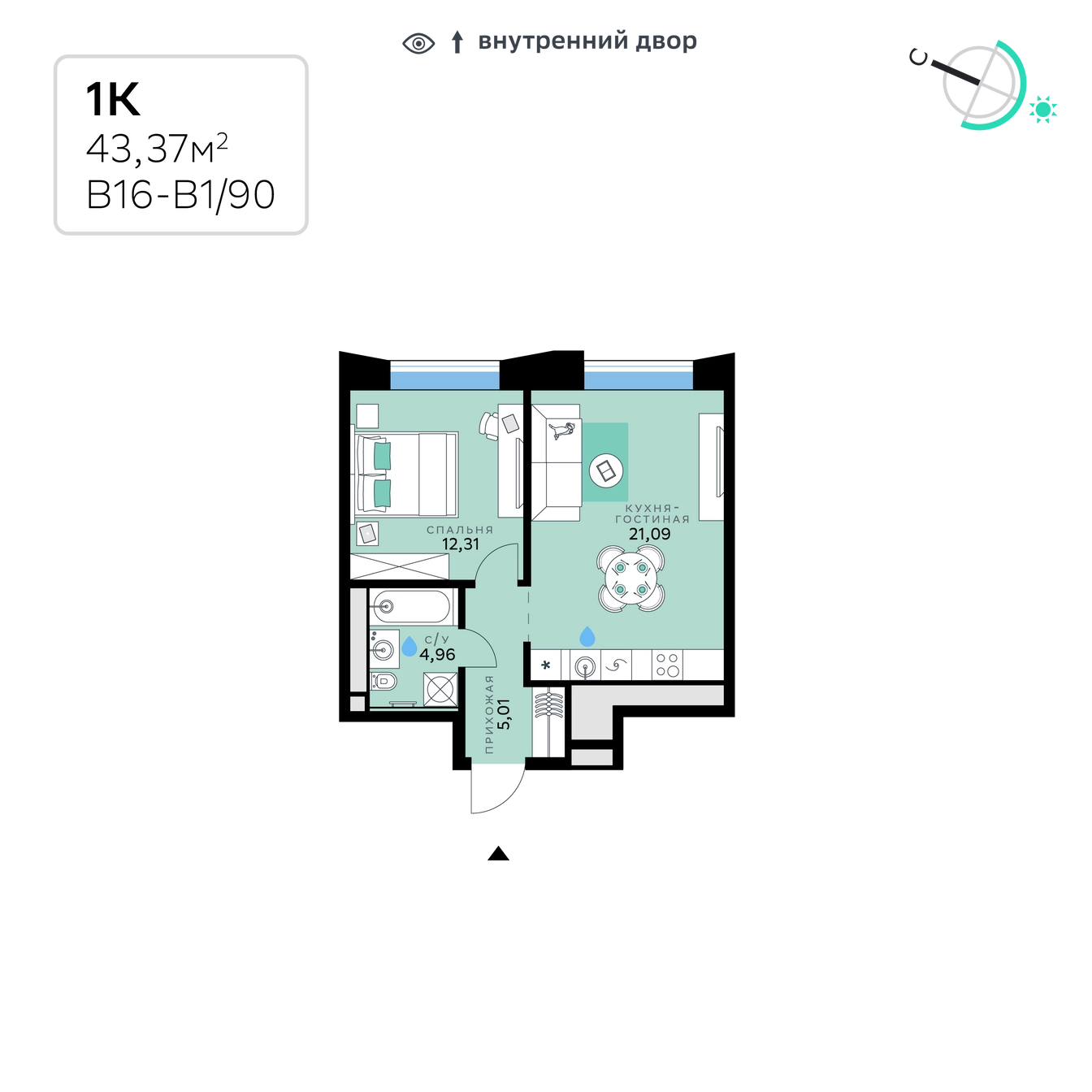 1-комн. 43.37 м²