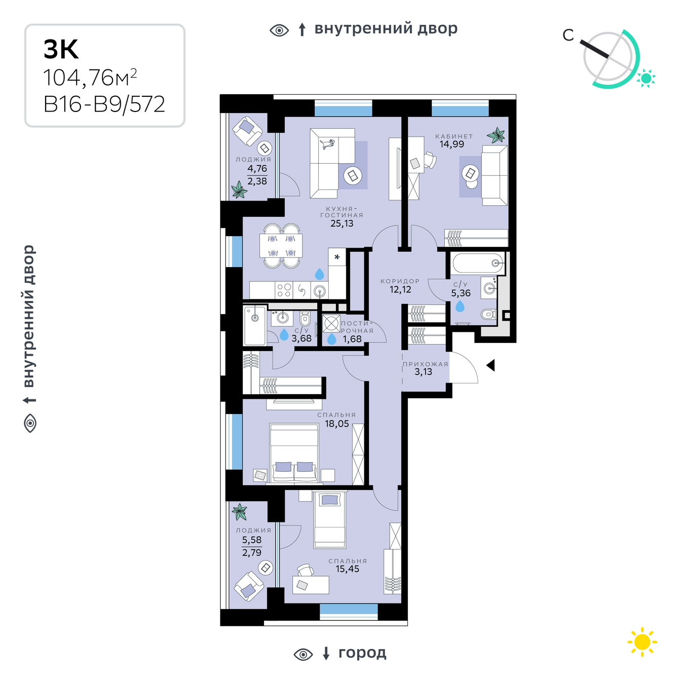 3-комн. 104.76 м²
