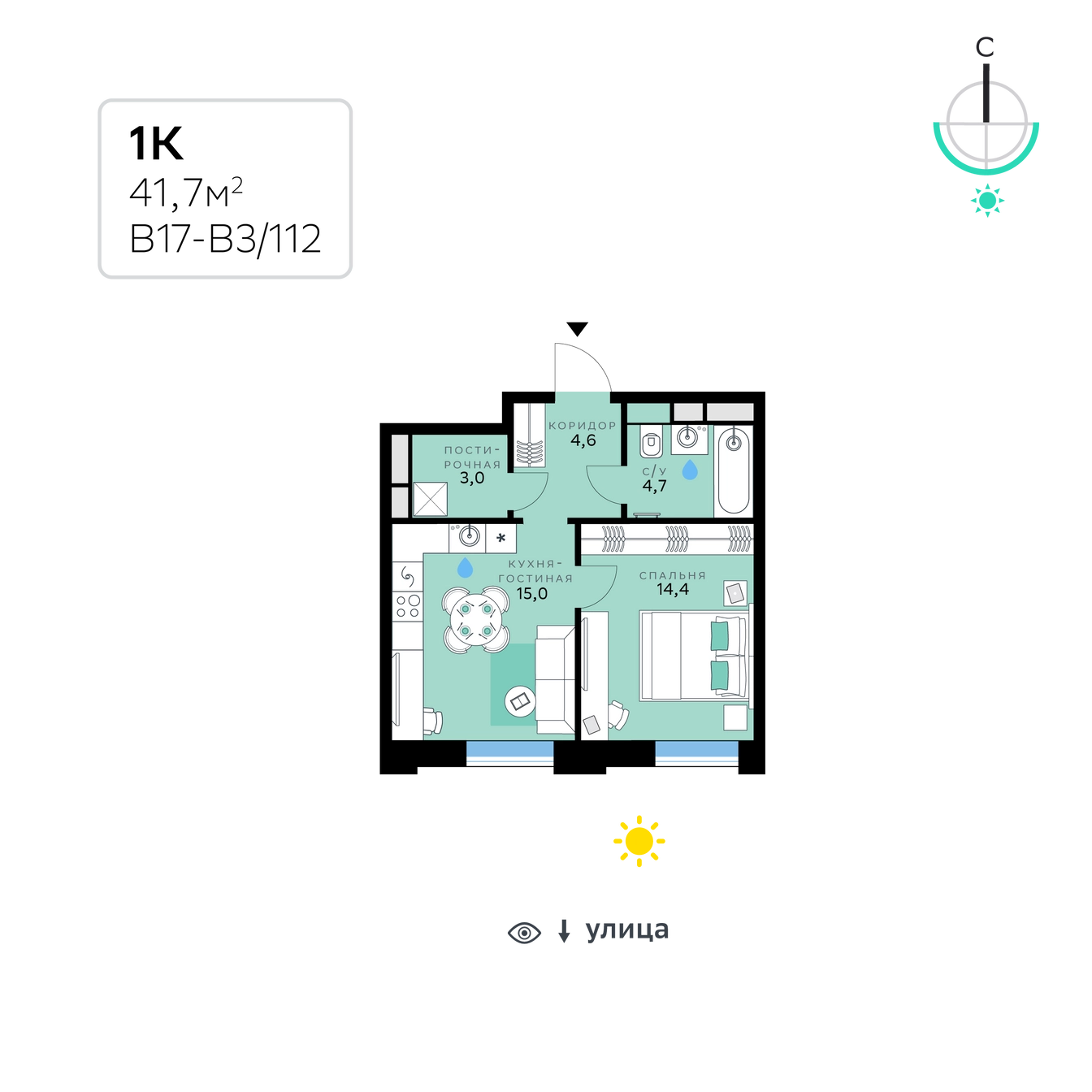 1-комн. 41.70 м²