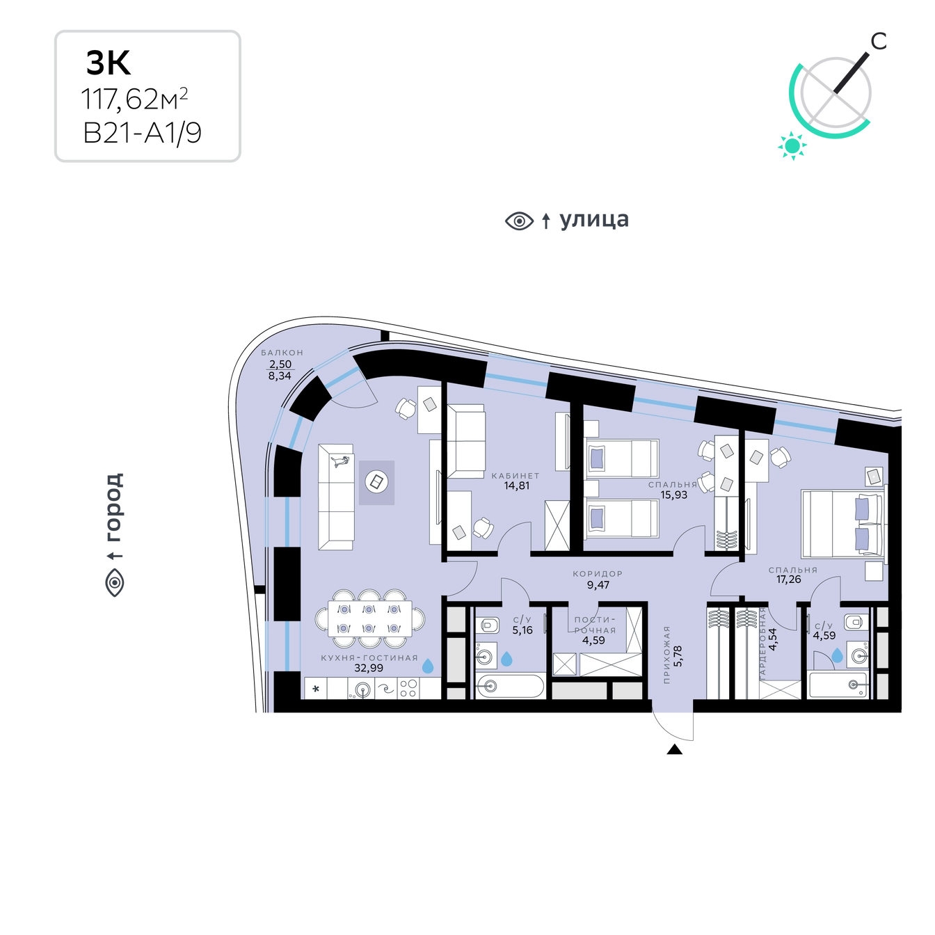 3-комн. 117.62 м² в СберСити
